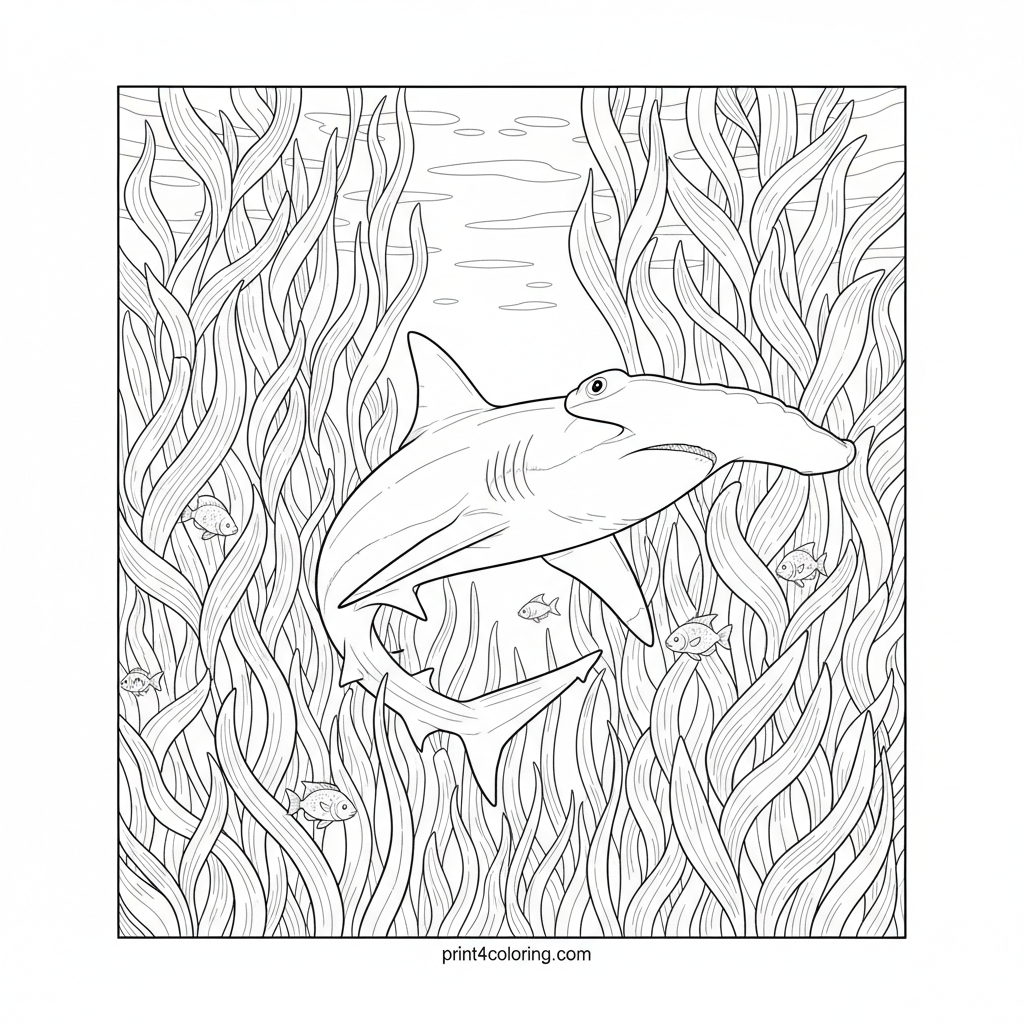 Hammerhead's Kelp Forest Expedition Coloring Page