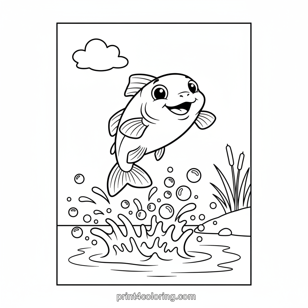 Catch this joyful catfish mid-leap, bursting from the water with a magnificent splash of happy, round bubbles! Sporting a wide, friendly smile, this lively scene is full of movement and happiness. Get ready to bring this aquatic adventure to life with your favorite colors!