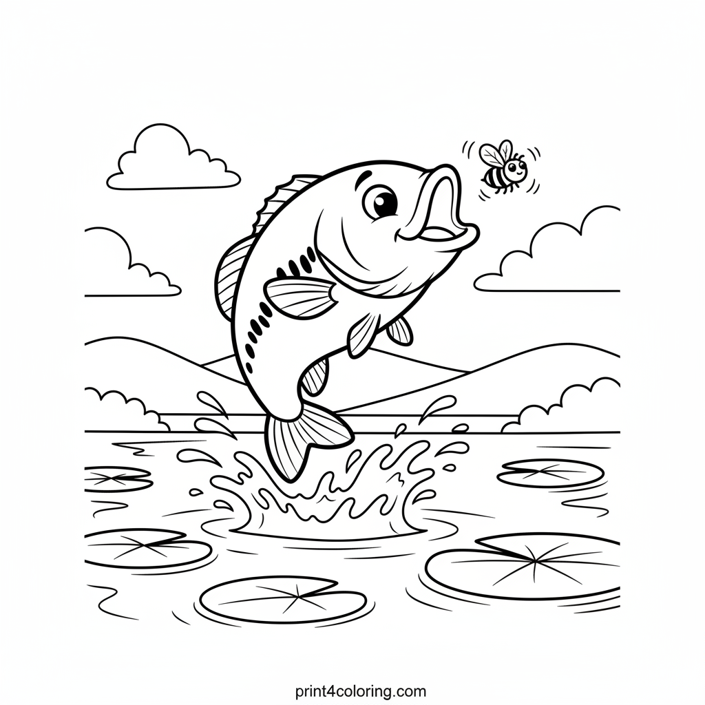 Leaping Bass Adventure: A Fly's Surprise! Coloring Page