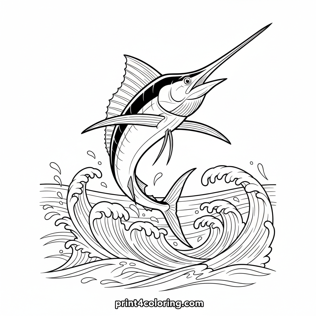 #marlin#ocean#fish#sea-creature#jump#action#wildlife#marine-life#coloring-page#printable