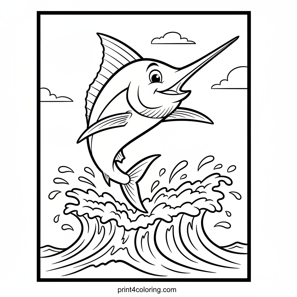 Dive into the excitement of the ocean with this dynamic coloring page! Witness a magnificent marlin gracefully leaping high out of the sparkling blue water, creating a thrilling splash. Imagine the vibrant colors of the deep sea and bright sky as you bring this powerful fish to life with your crayons and markers.