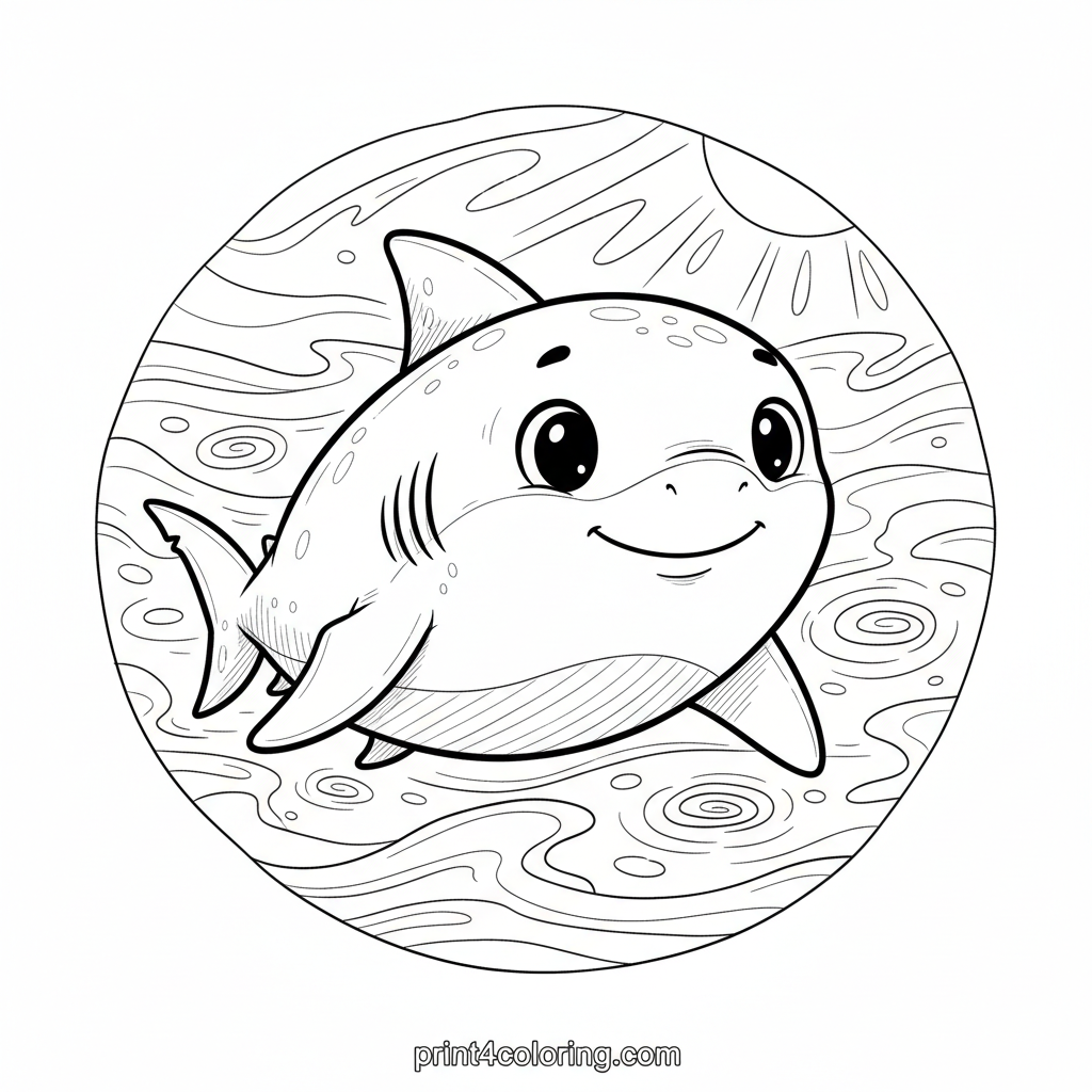 Picture a magnificent great white shark gliding peacefully through the vast, sun-kissed ocean. Gentle light rays dance around its powerful form as it navigates the clear blue waters. This detailed page invites you to explore the beauty and quiet strength of one of the sea's most amazing creatures.