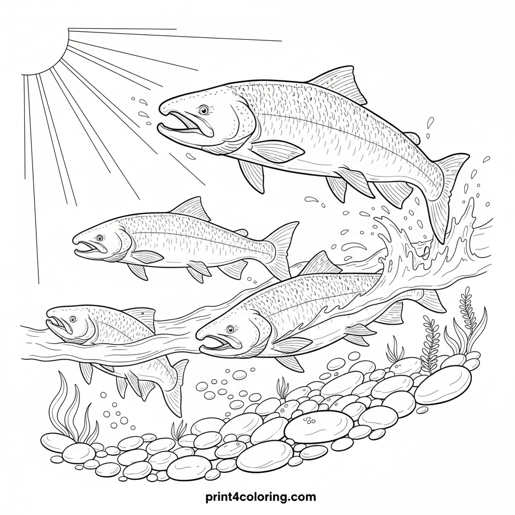 #salmon#fish#underwater#river#spawning#eggs#nature#wildlife#aquatic#coloring-page#printable
