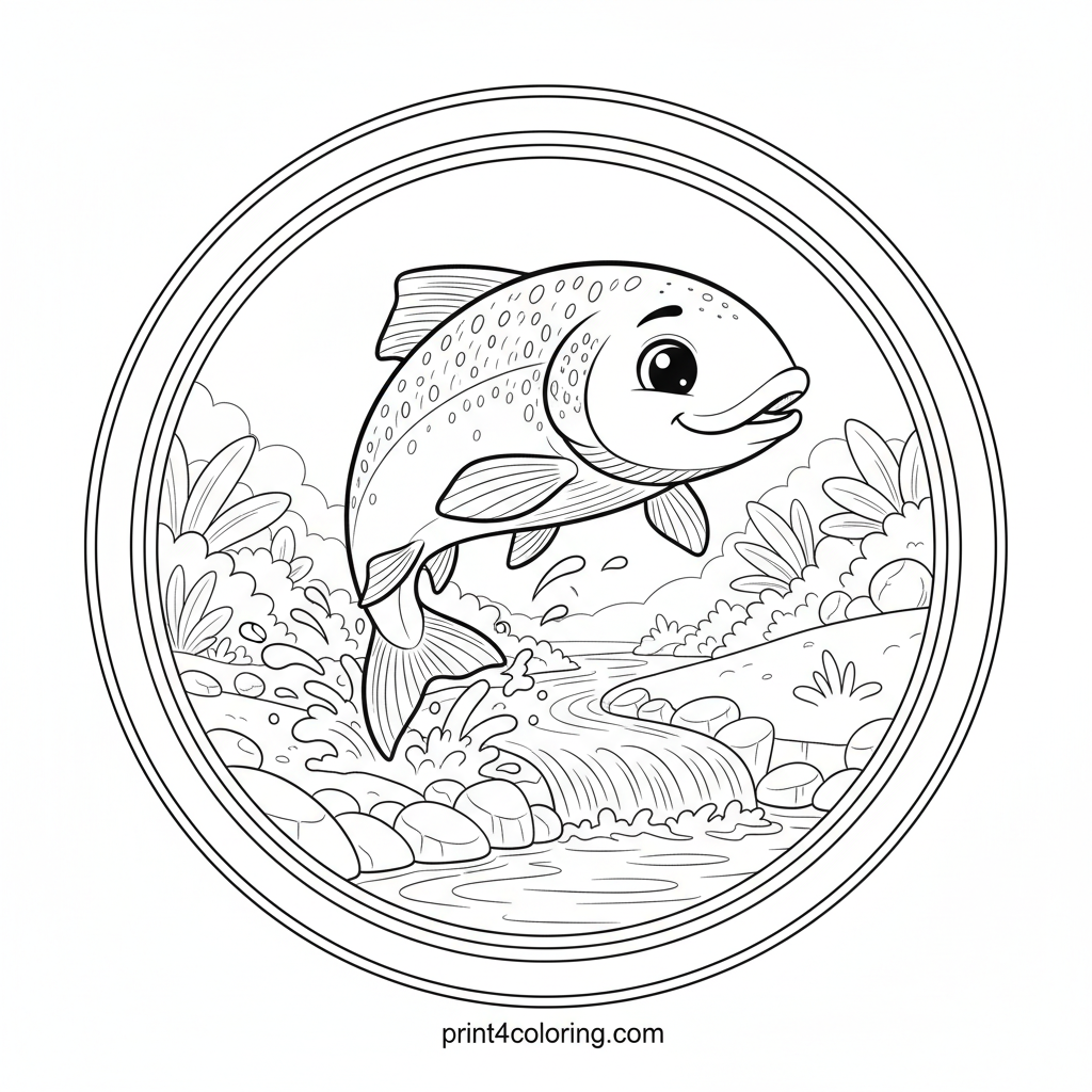 - 4🌈 Mid-Air Movement - Use subtle shading on the salmon's body to emphasize its powerful muscles as it flexes for the leap, showing its determination.