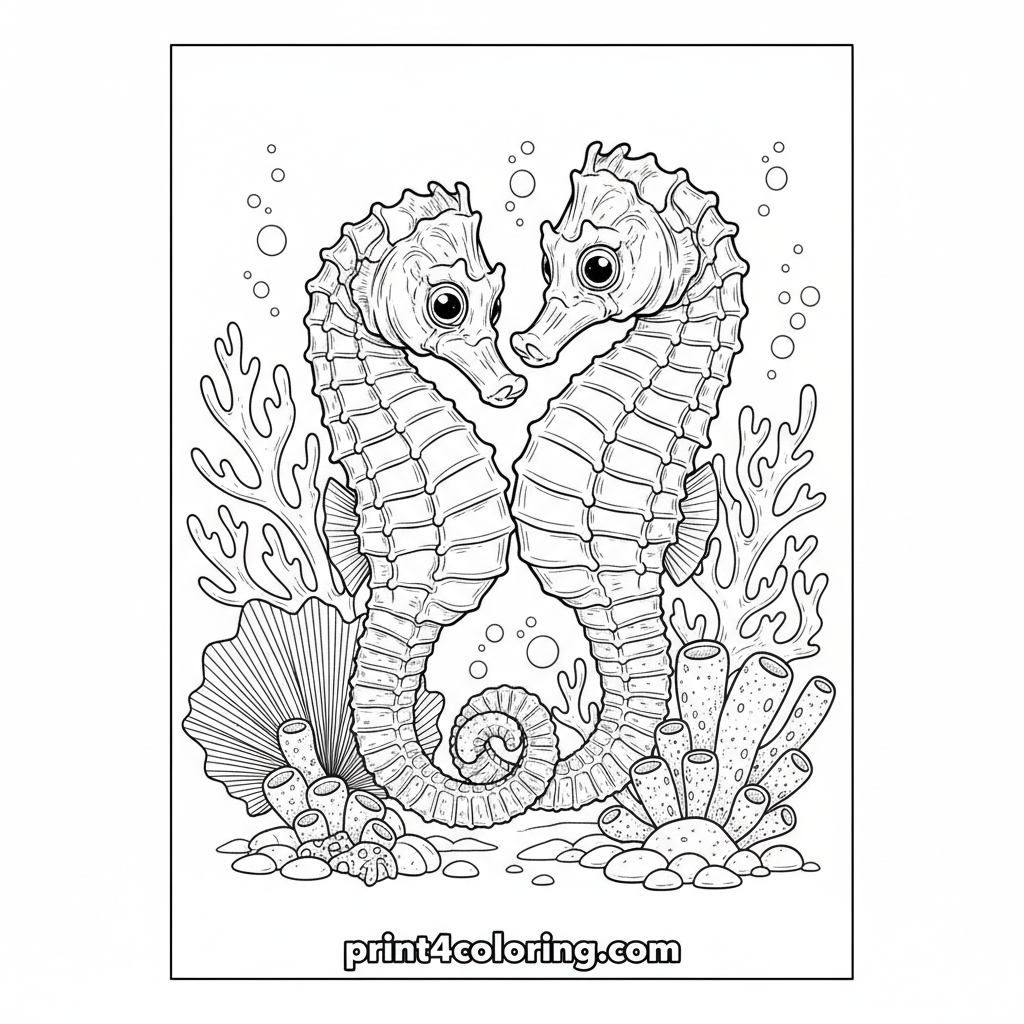 - 1🎨 Intricate Patterns - Use fine-tipped markers or colored pencils to highlight the unique textures and patterns on the seahorses' bodies. Think about subtle color variations.