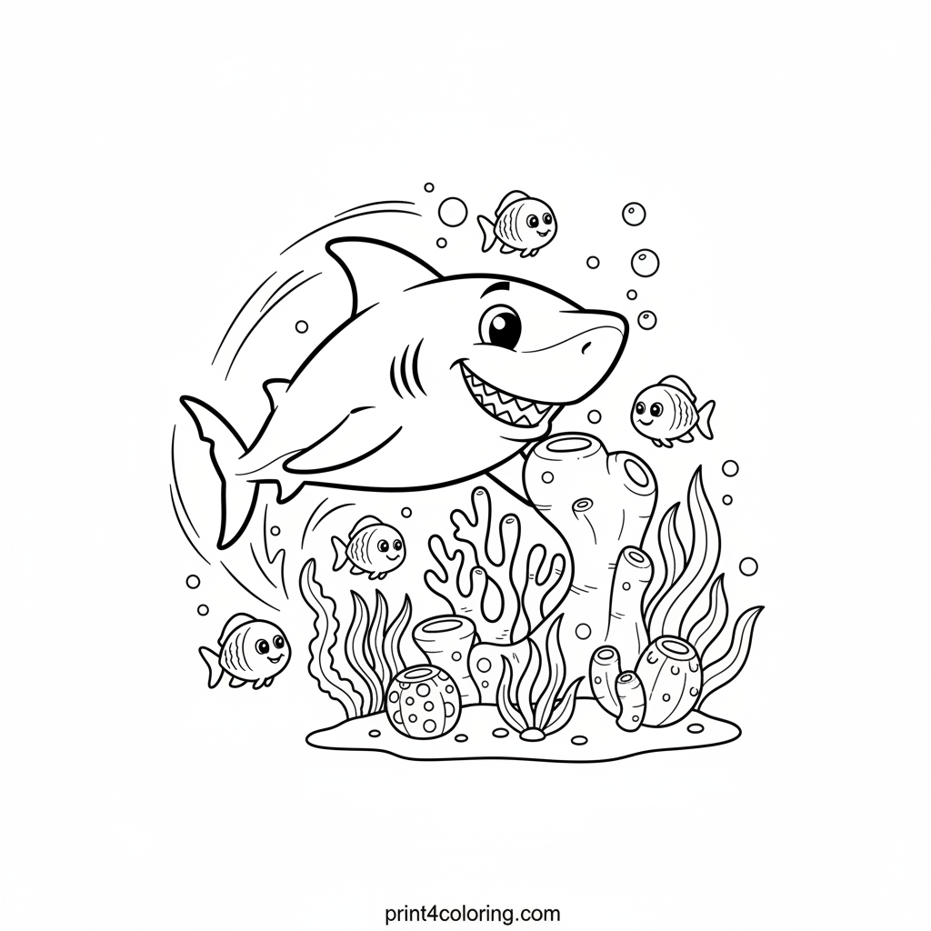 Smiley Shark's Coral Garden Adventure Coloring Page