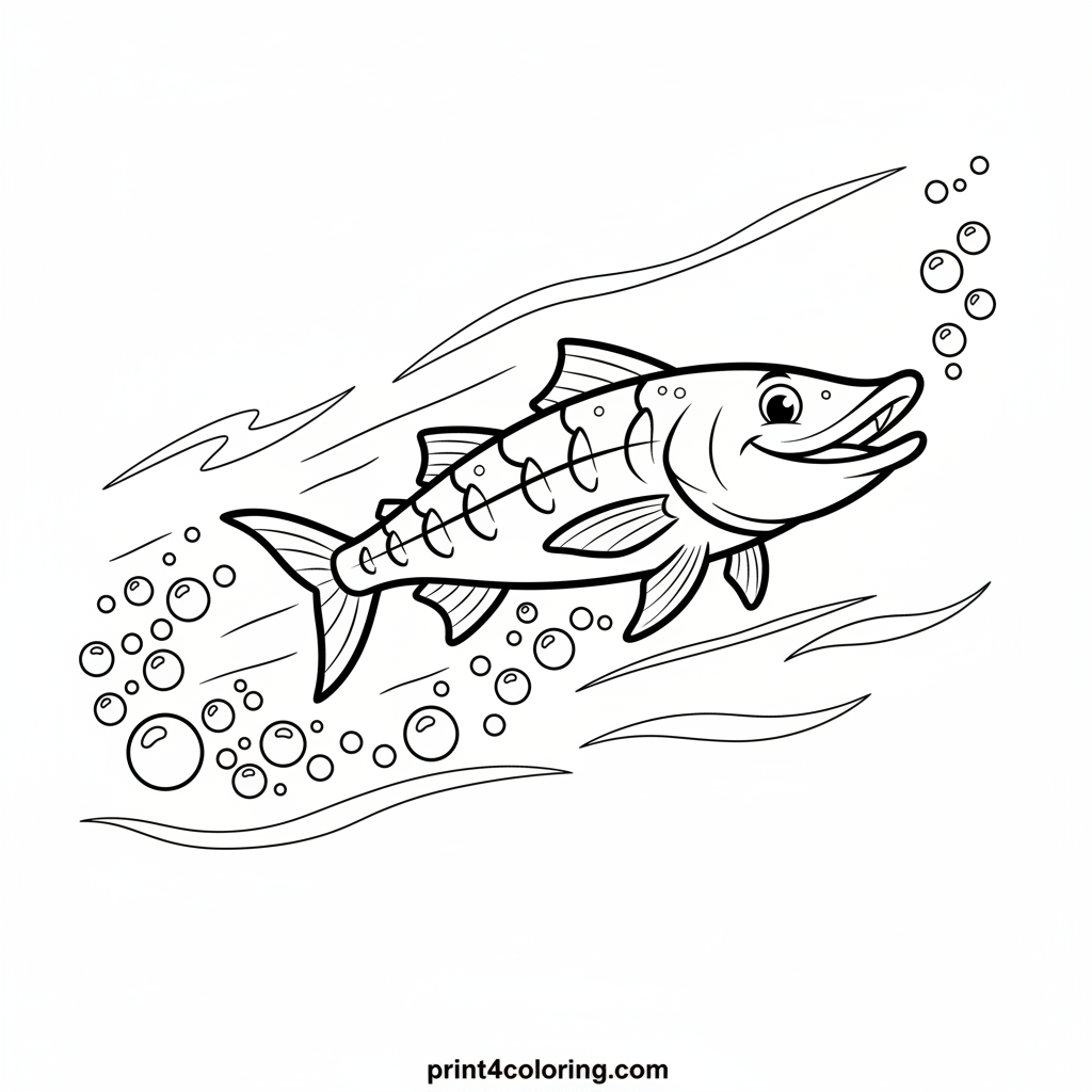 #barracuda#fish#ocean#sea-creatures#underwater#fast#bubbles#marine-life#action#coloring-page#printable