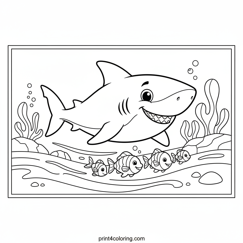 Dive into an exciting underwater adventure! A friendly, speedy shark is having a super fun race through the sparkling blue ocean. Can you help the sleek shark zoom past the quick school of fish? Grab your crayons and bring this thrilling deep-sea chase to life with vibrant colors!