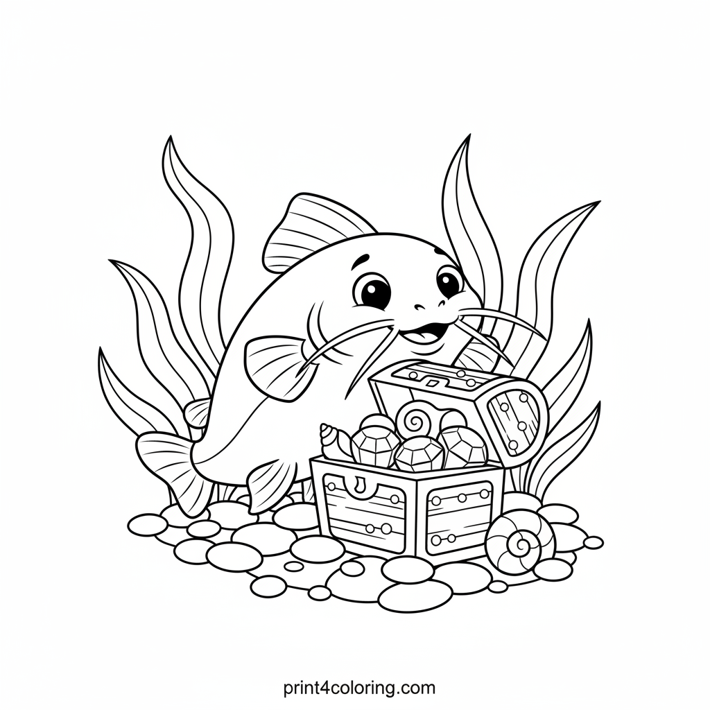 The Curious Catfish's Sparkling Treasure Coloring Page