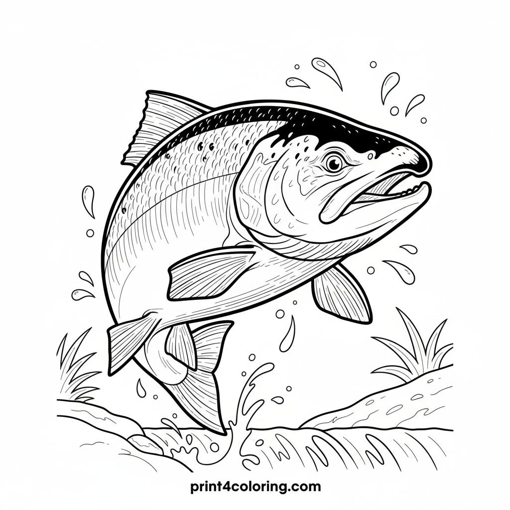 #salmon#fish#river#wildlife#nature#leap#water#coloring-page#printable
