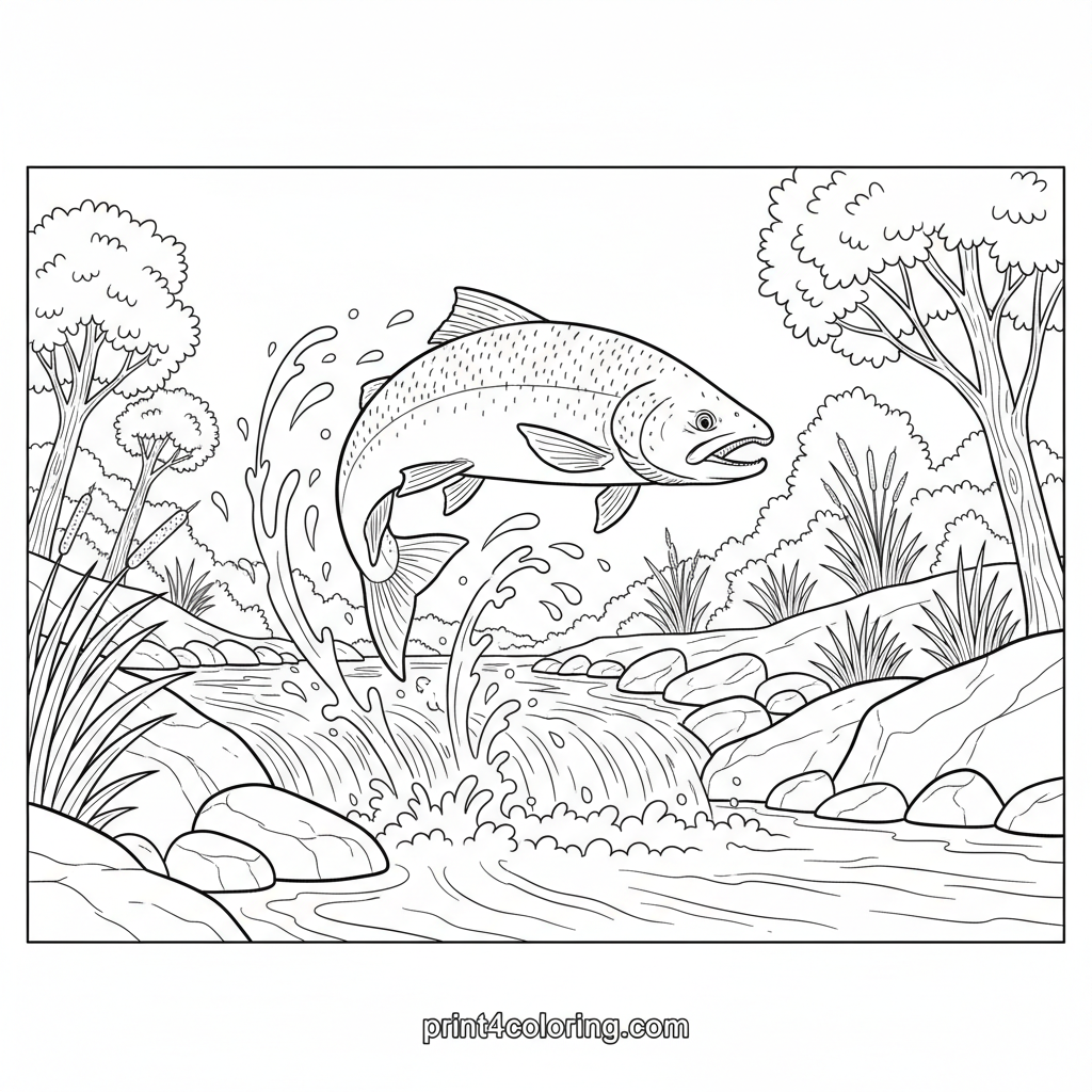#salmon#fish#river#nature#wildlife#leap#journey#determination#coloring-page#printable