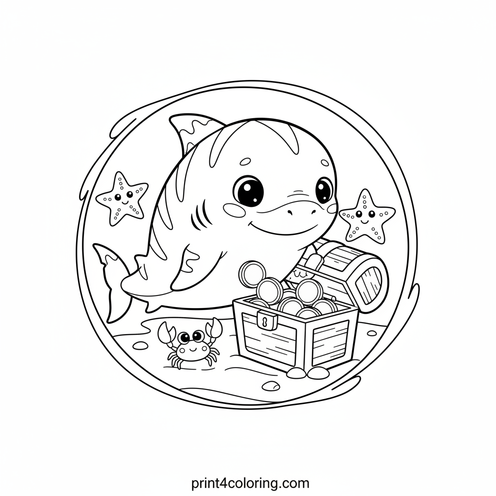 Tiger Shark's Cozy Treasure Discovery Coloring Page