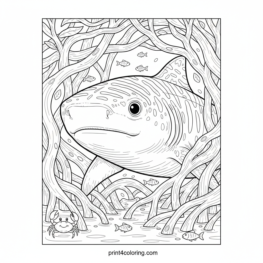 Tiger Shark's Mangrove Hideaway Coloring Page