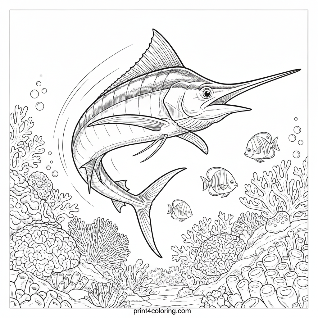 #marlin#juvenile#fish#ocean#reef#coral#underwater#sea-creature#marine-life#action#coloring-page#printable