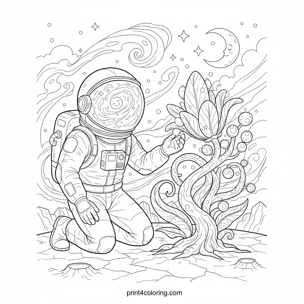 #astronaut#space#alien-plant#exoplanet#nebula#sci-fi#discovery#cosmic#coloring-page#printable