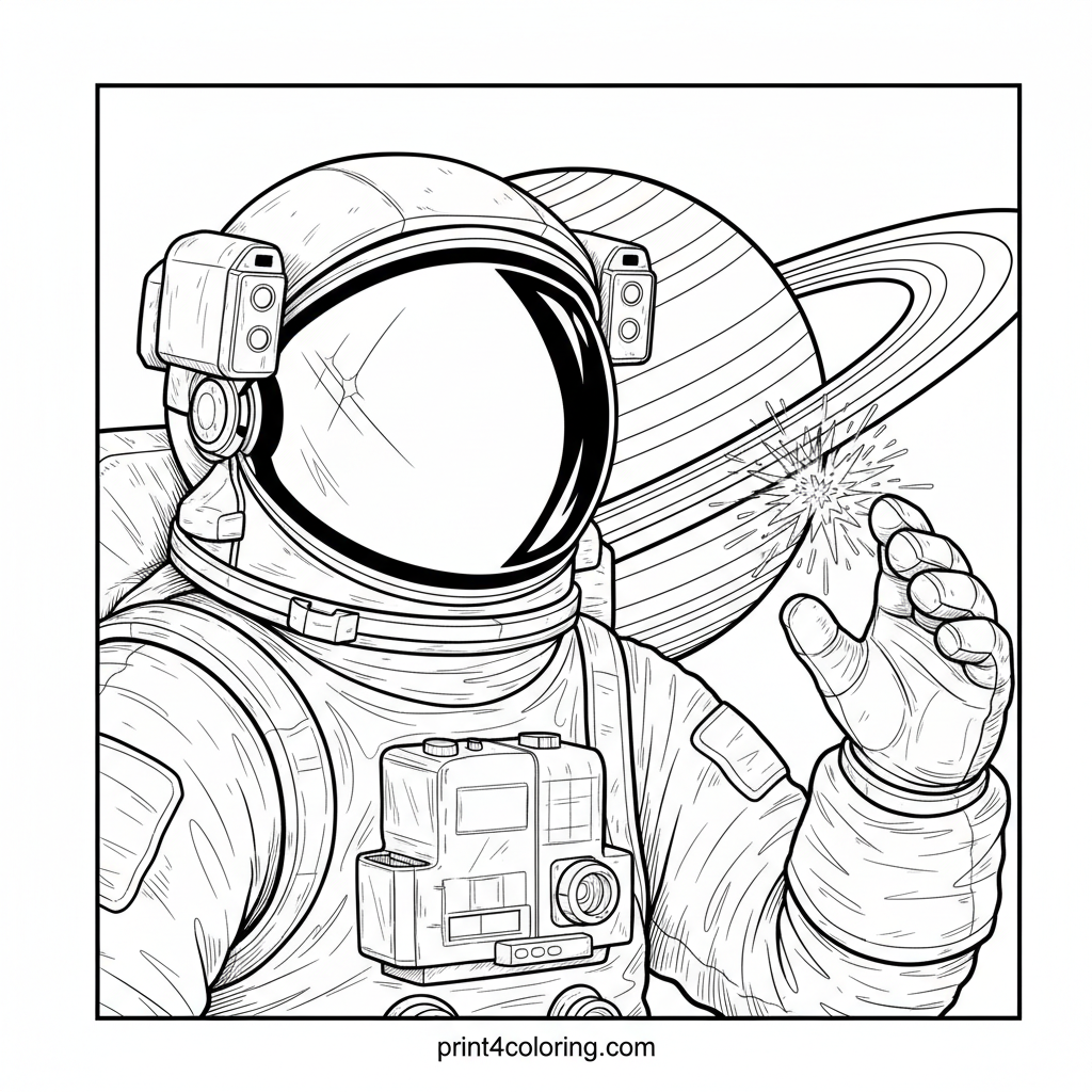 Astronaut's Saturn Ring Discovery Coloring Page