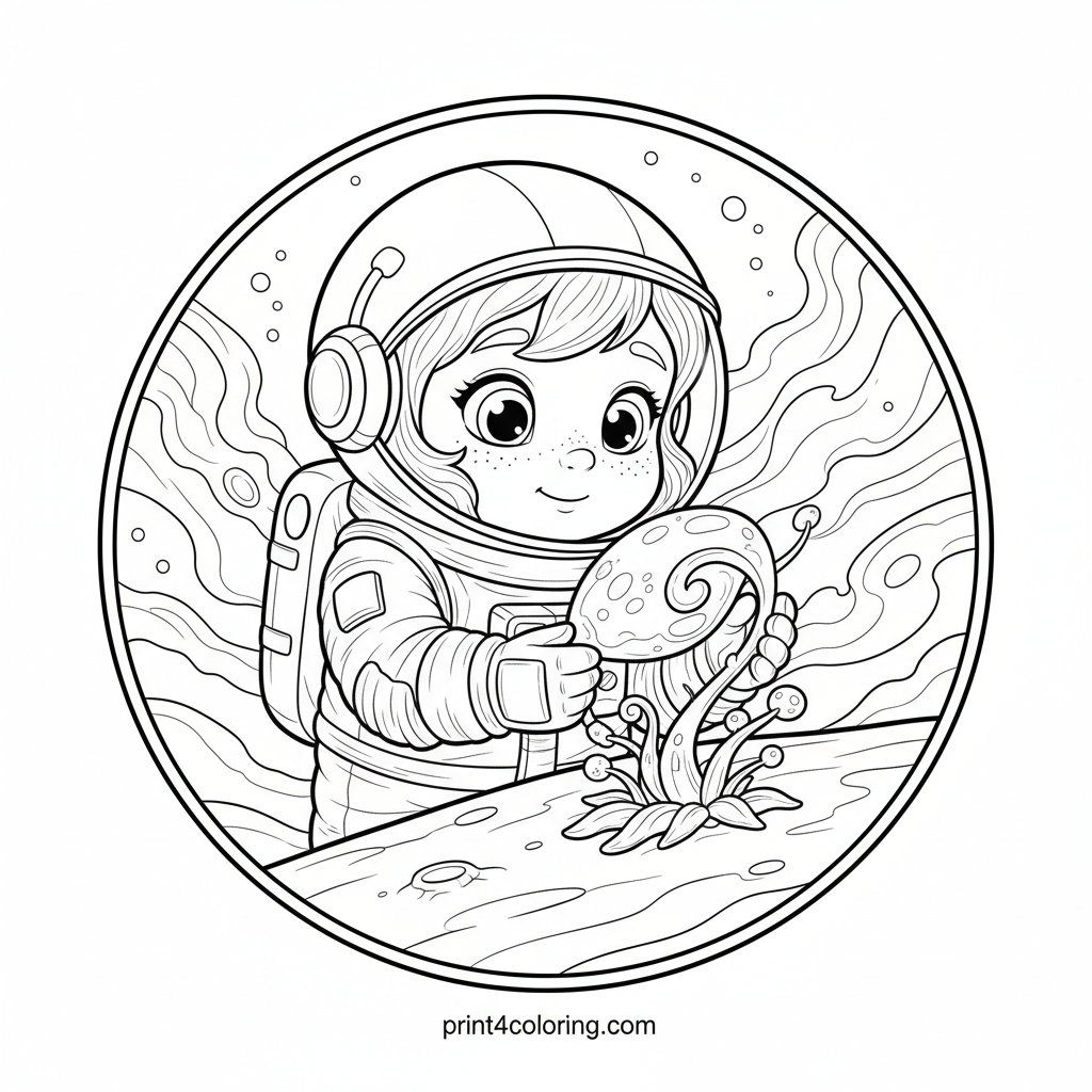 Awe on Alien Shores: Cosmic Bloom Discovery Coloring Page