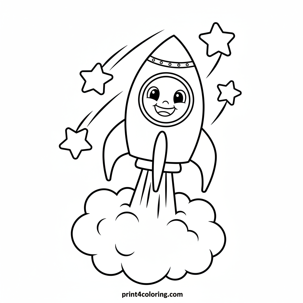 Imagine a super-fast rocket soaring into space! This exciting coloring page shows a powerful rocket ship launching high into the sky, leaving a big puff of friendly smoke behind. Watch the stars streak by as you color your way to an amazing space adventure, ready for takeoff!