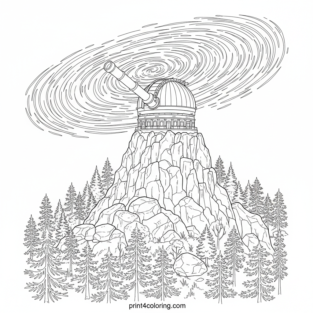Celestial Summit: Observatory Under the Milky Way Coloring Page