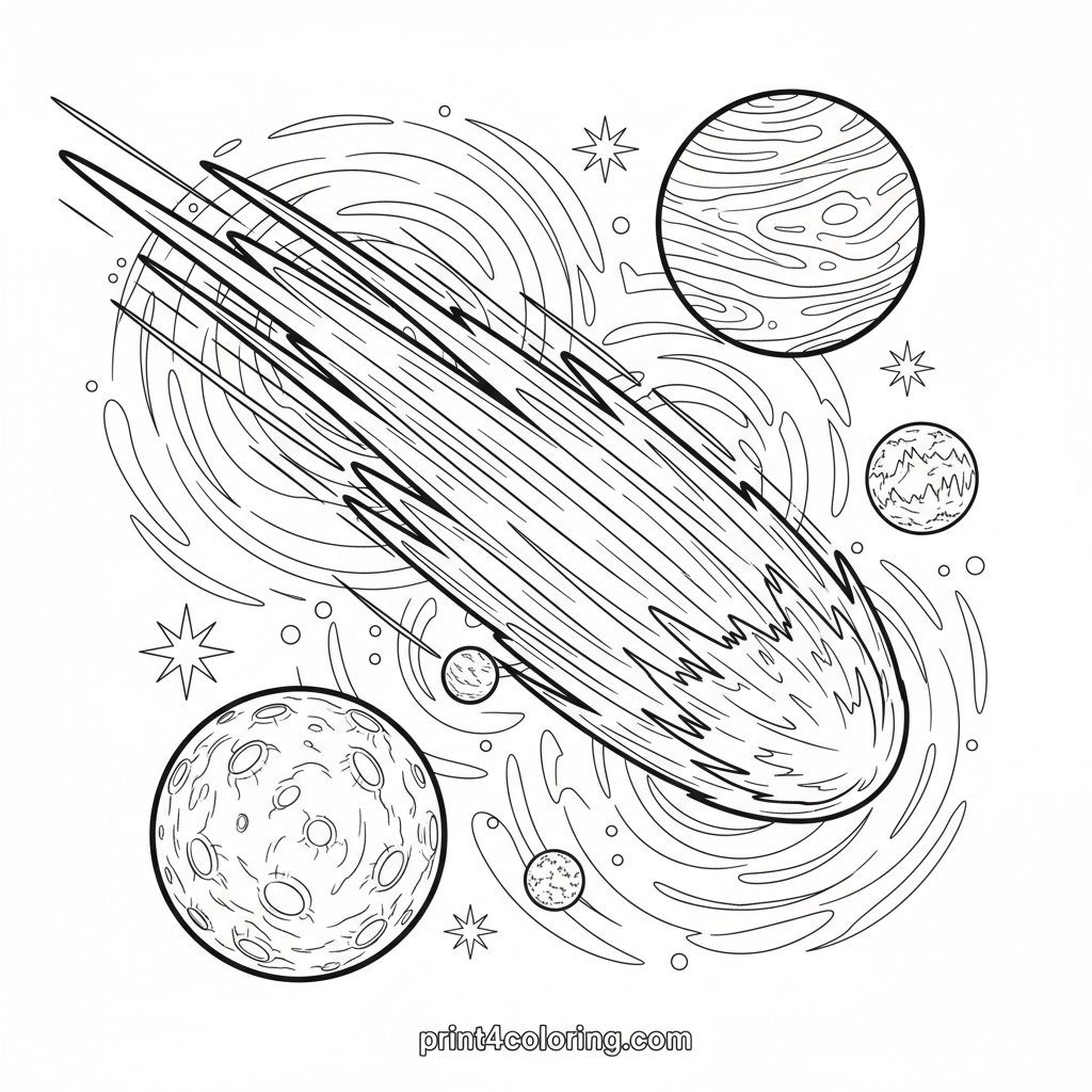 Cosmic Comet's Grand Tour Coloring Page