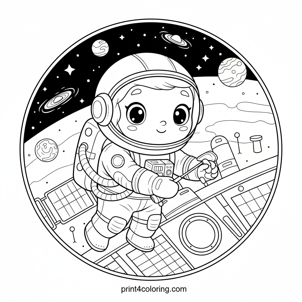 Cosmic Craftsman: ISS Spacewalk Adventure Coloring Page