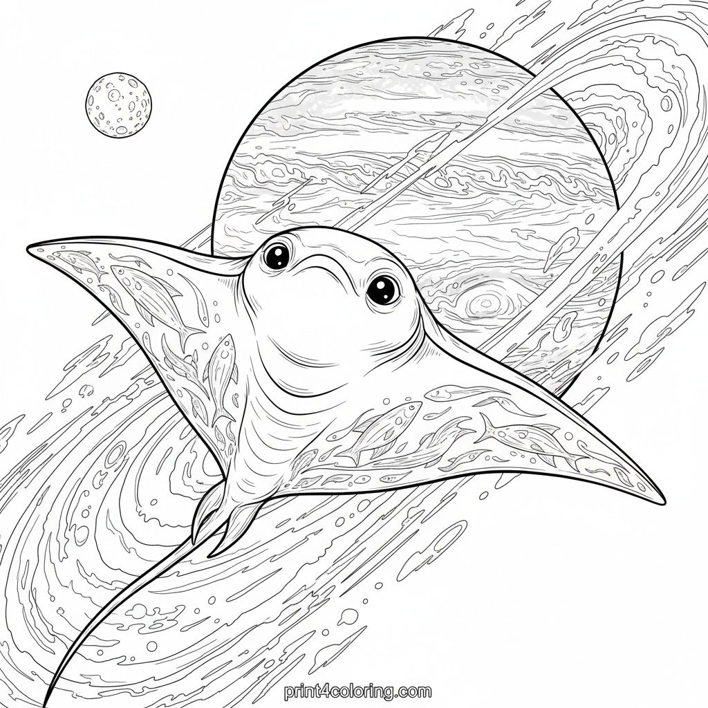 Cosmic Manta Ray Near Jupiter Coloring Page