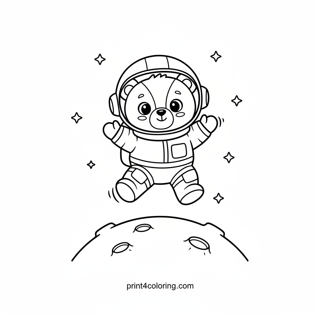 Cozy Astronaut Bear's Lunar Leap Coloring Page