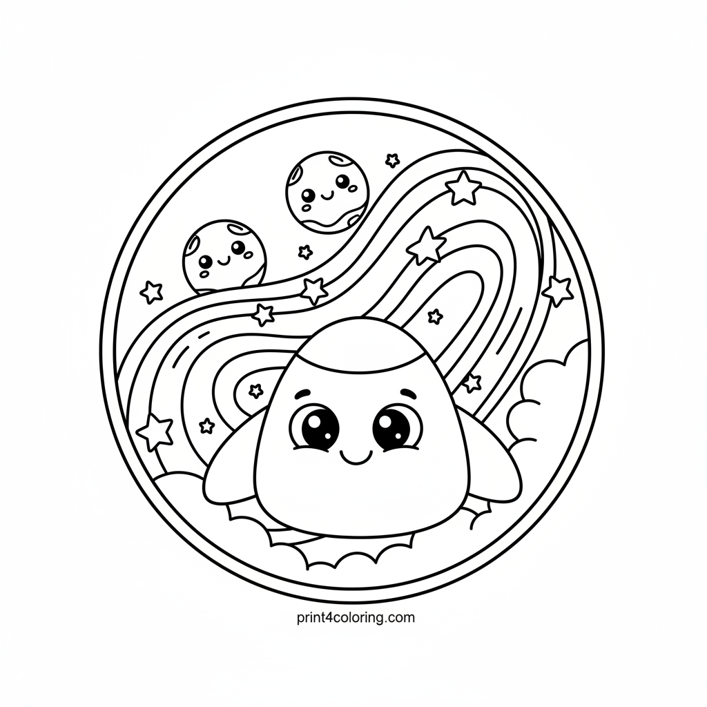 Blast off on a cozy adventure aboard our special comet cruiser! Soar through a dazzling rainbow trail, leaving sparkling stardust in your wake. Wave hello to friendly, wobbly alien planets. This magical journey is perfect for little astronauts to color with bright, happy hues!