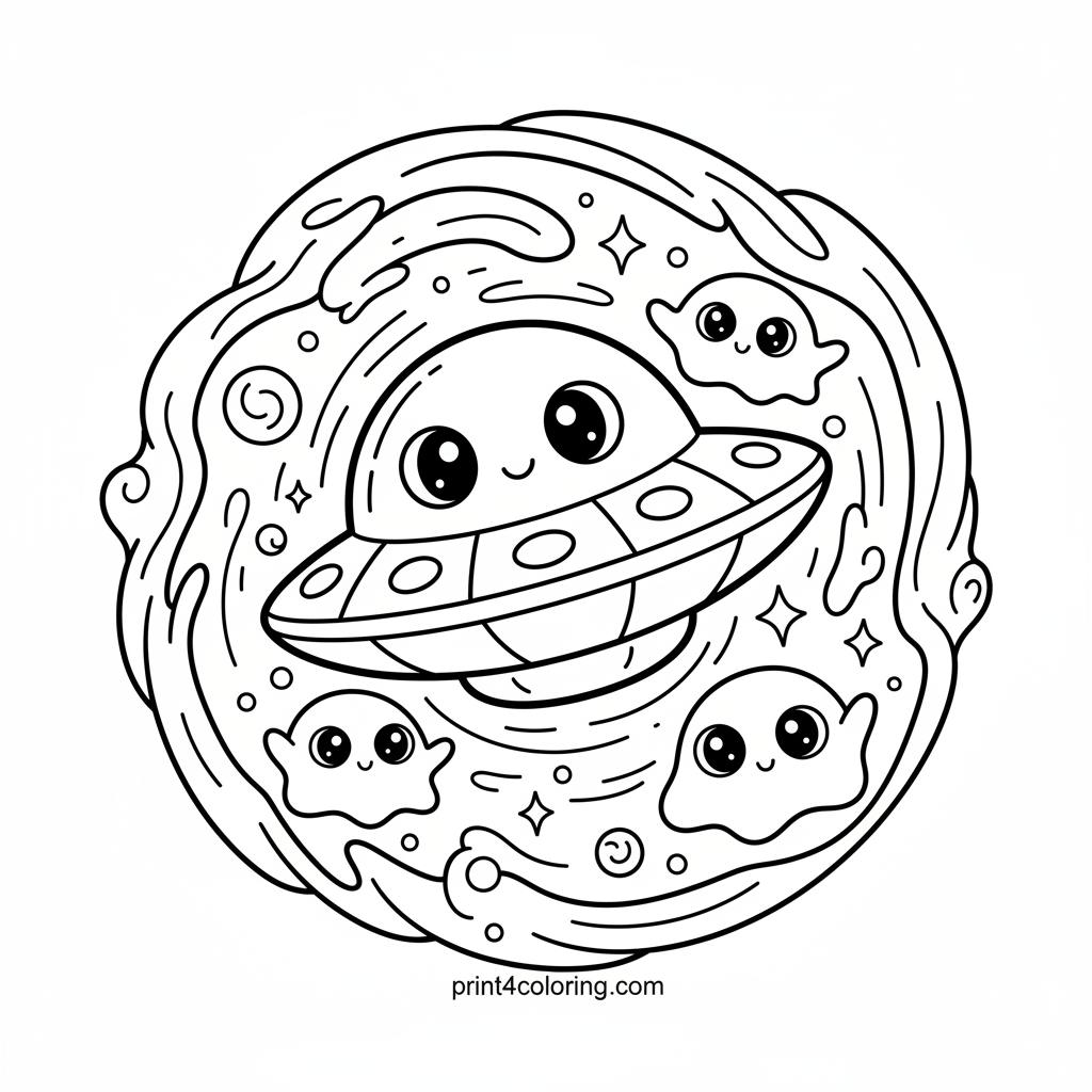 #ufo#starship#galaxy#space#magic#cute#nebula#friendly-creatures#coloring-page#printable
