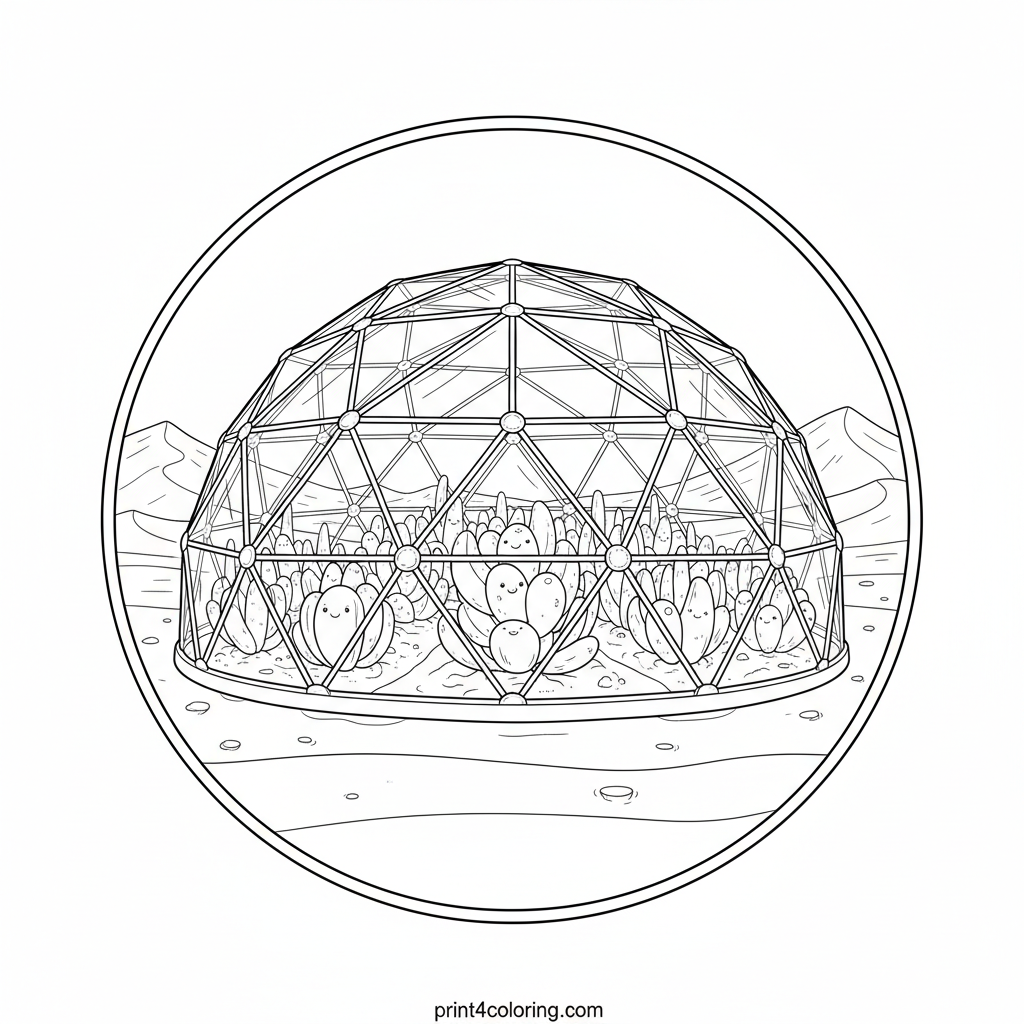 Cozy Martian Biodome Garden Coloring Page
