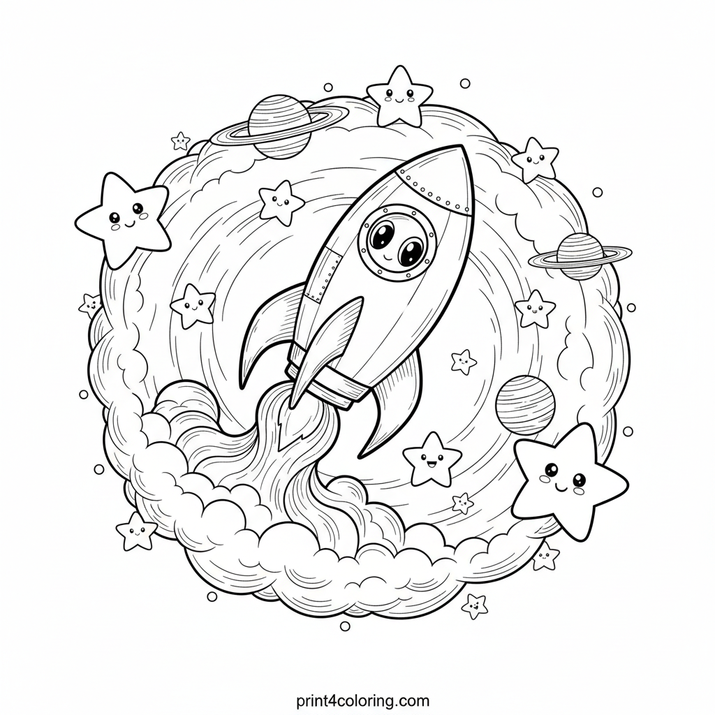 Embark on an epic cosmic adventure with this intricately detailed coloring page! A charming, classic-style rocket ship glides serenely through a swirling, colorful nebula. Discover countless twinkling stars and distant planets as you bring this beautiful space scene to life with your favorite colors. Perfect for aspiring astronauts and dreamers!