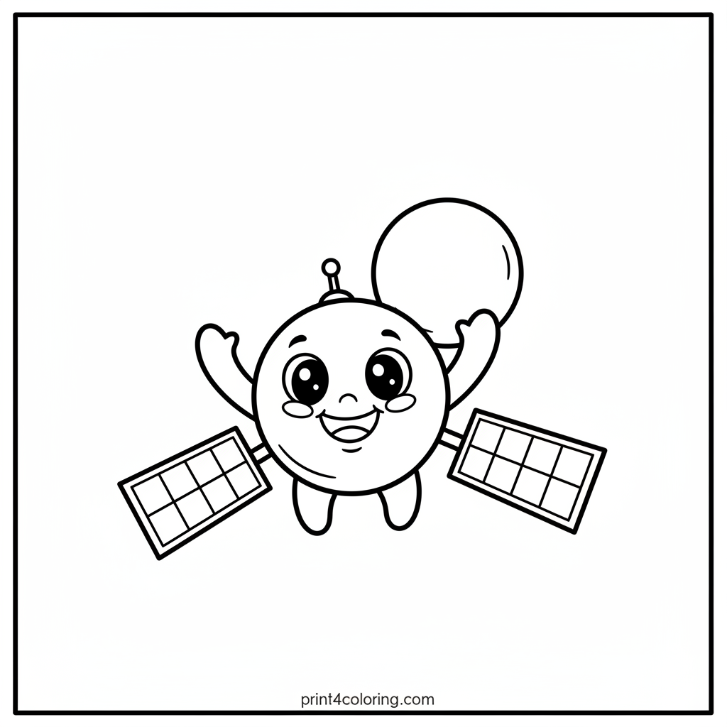 Friendly Satellite Waving in Space Coloring Page