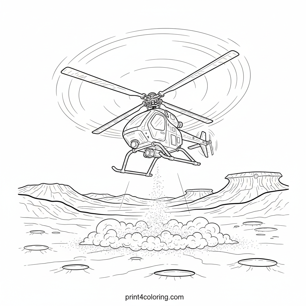 - 3✨ Dusty Motion - For the disturbed dust below the helicopter, use very light browns, grays, and whites, blending them softly outwards to create a sense of subtle, swirling movement.