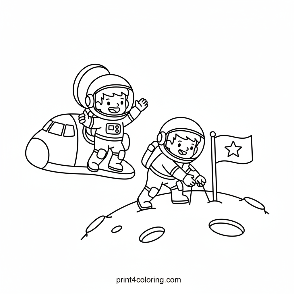 Little Astronauts' Moon Landing Adventure Coloring Page