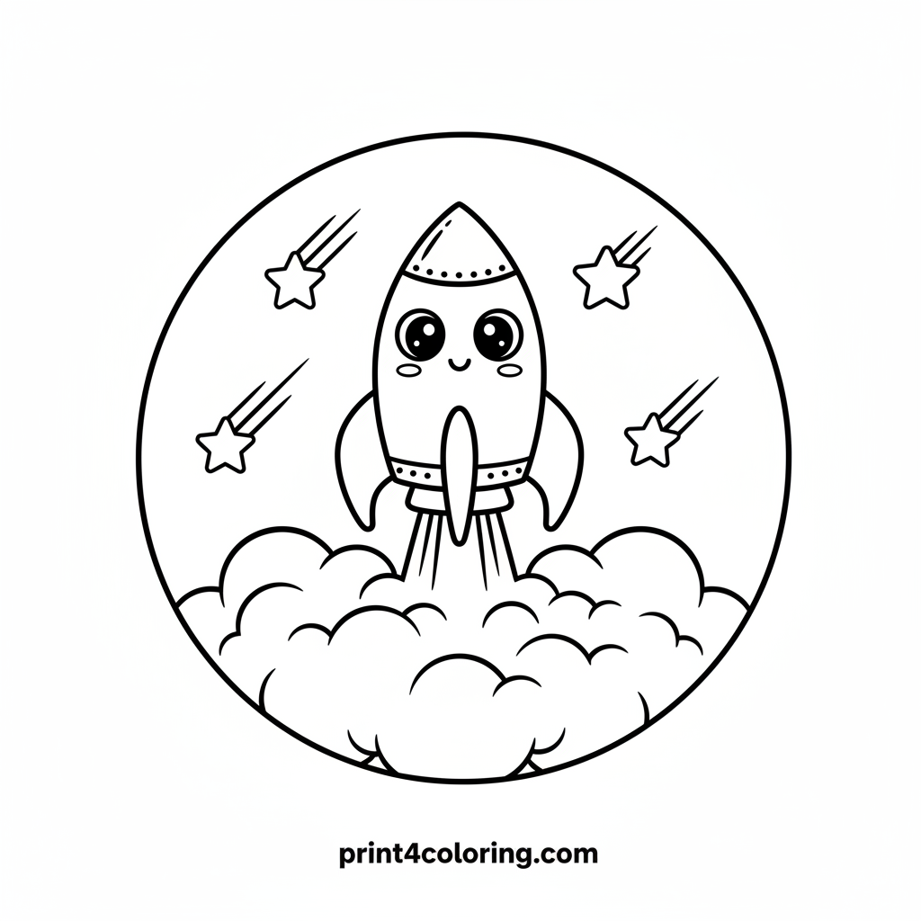 Join our friendly little rocket as it blasts off into the starry night sky! Watch the big puff of cozy smoke as it zooms past twinkling stars, ready for an amazing journey. Get your crayons ready to color this exciting space adventure!