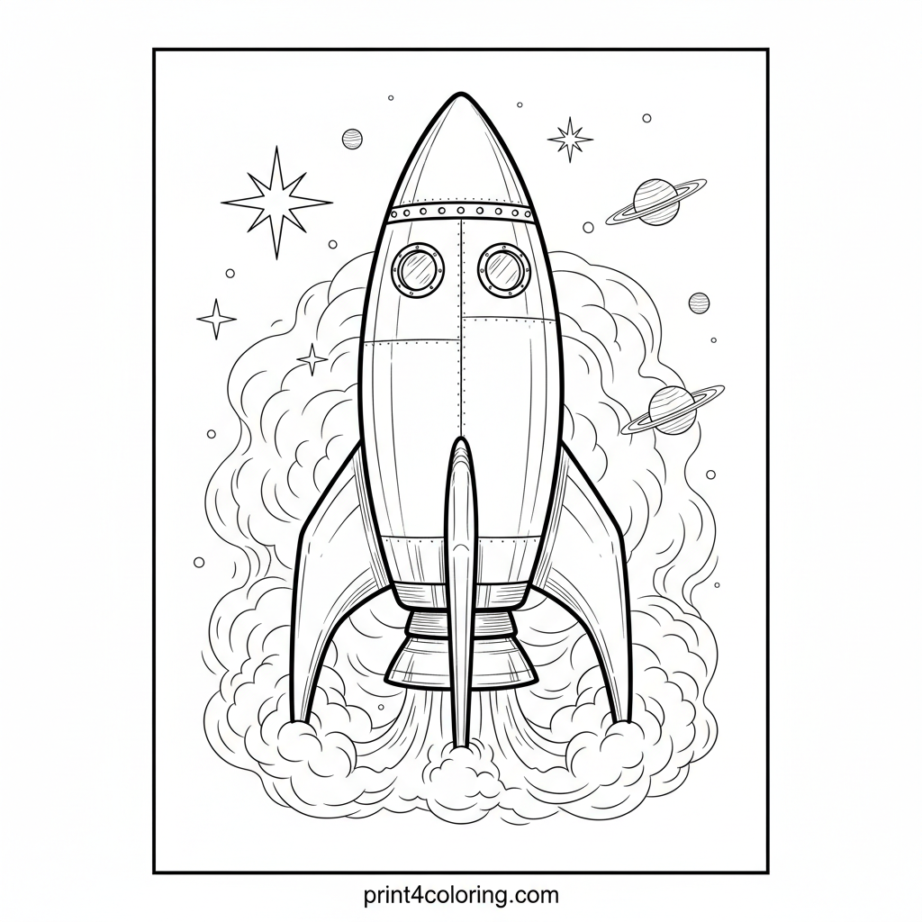 Embark on an epic cosmic adventure! A classic rocket ship gracefully navigates a vibrant, swirling nebula. Detailed stars twinkle and distant planets beckon in the background, inviting you to add your unique splash of color to this breathtaking interstellar journey. Perfect for aspiring astronauts and space dreamers.