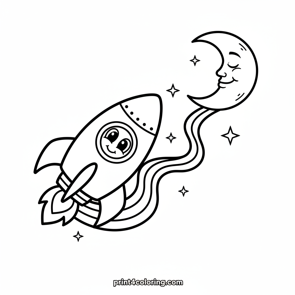 Rainbow Rocket's Moon Adventure Coloring Page