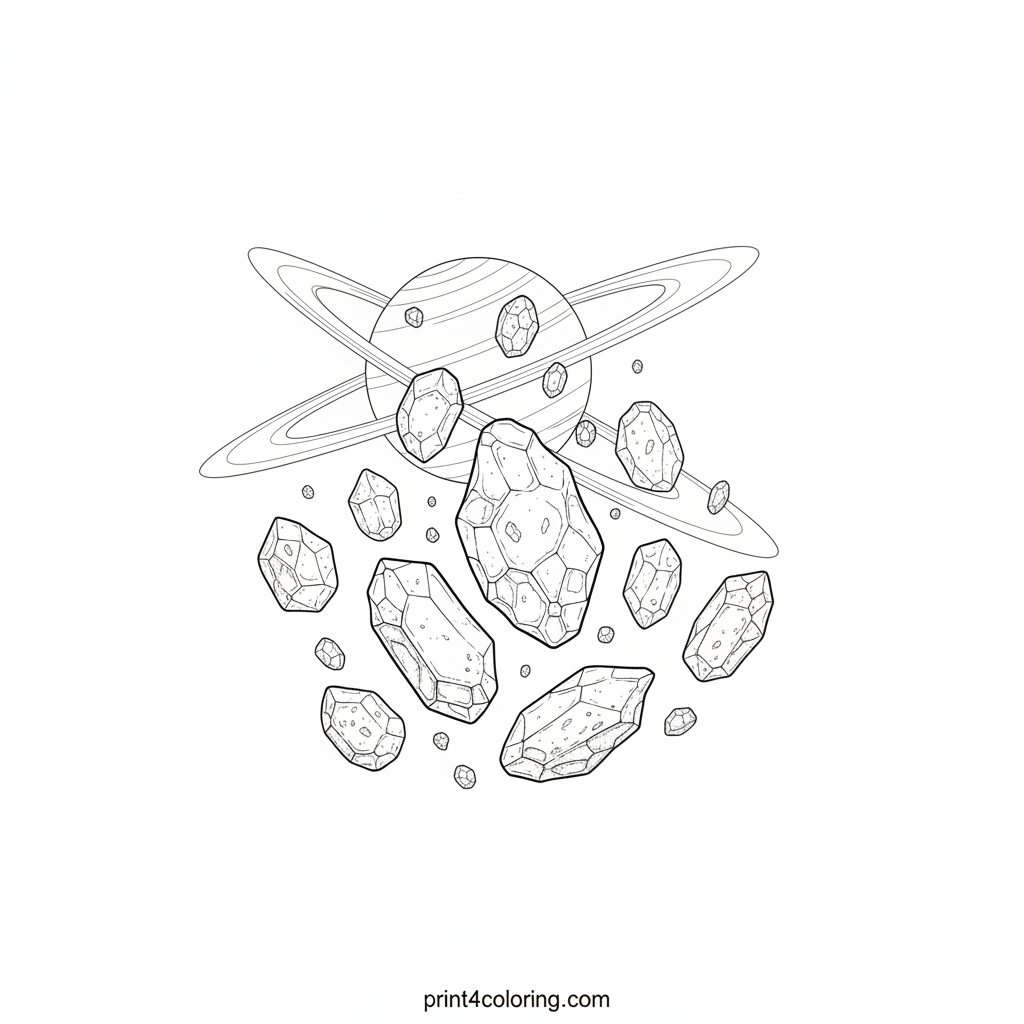 Explore the dazzling Ice Garden of Saturn's rings! This highly detailed scene brings you close to unique ice crystals and rocky fragments, each with subtle textures, tumbling gently. It's a cosmic "still life" against the distant, majestic curve of Saturn. Use your colors to bring this sparkling, alien garden to life!