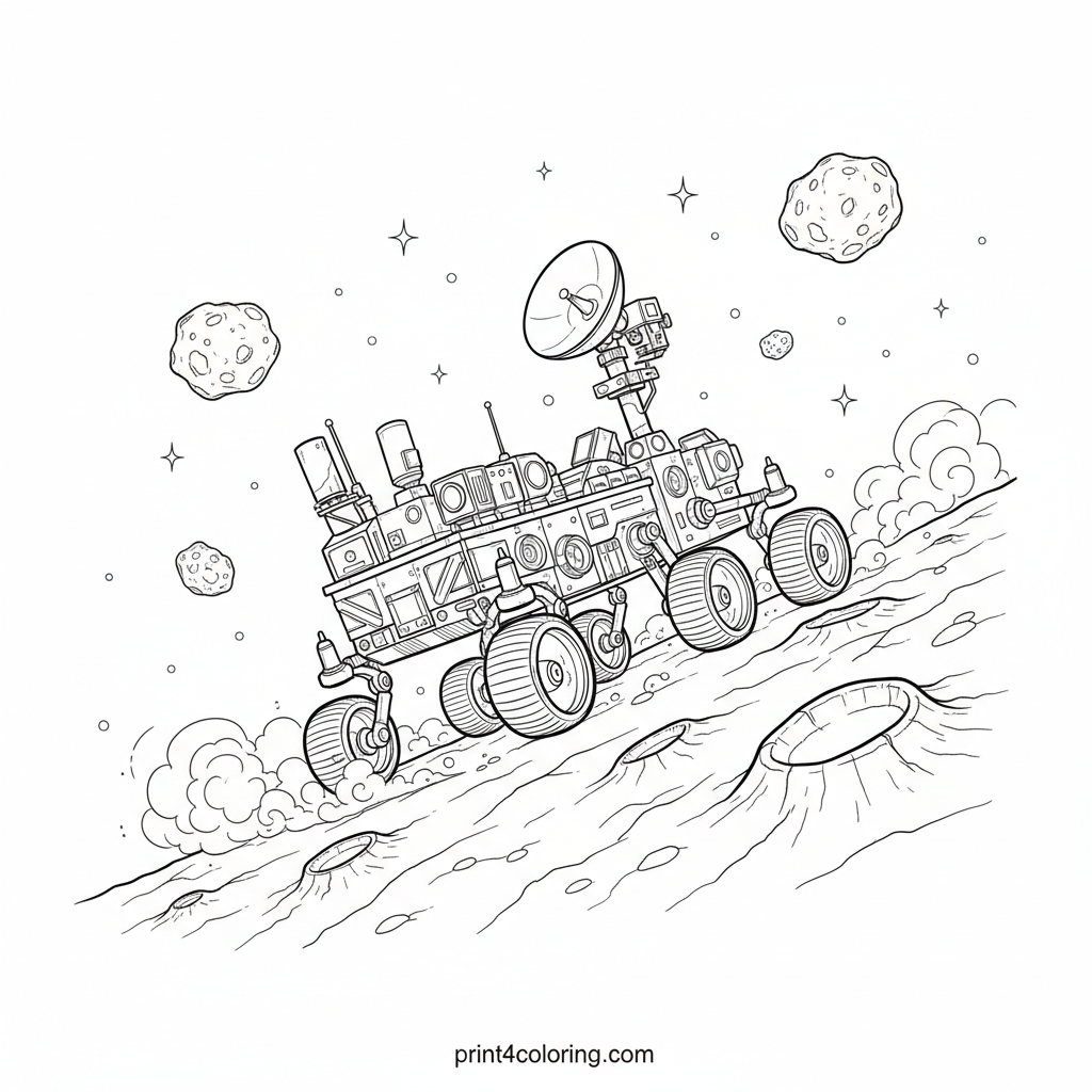 #space-rover#asteroid#exploration#robotics#science#cosmos#coloring-page#printable