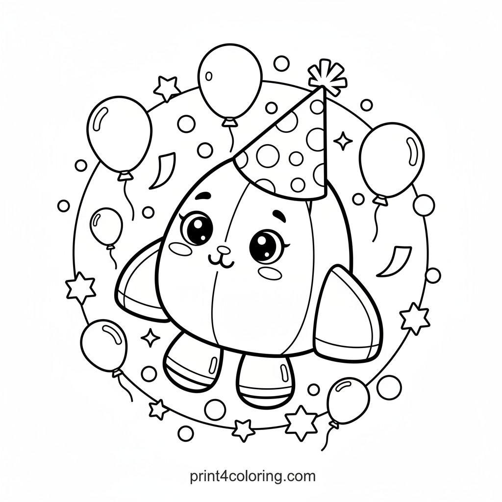#space-shuttle#party#hat#balloons#confetti#outer-space#whimsical#cute#celebration#fantasy#coloring-page#printable