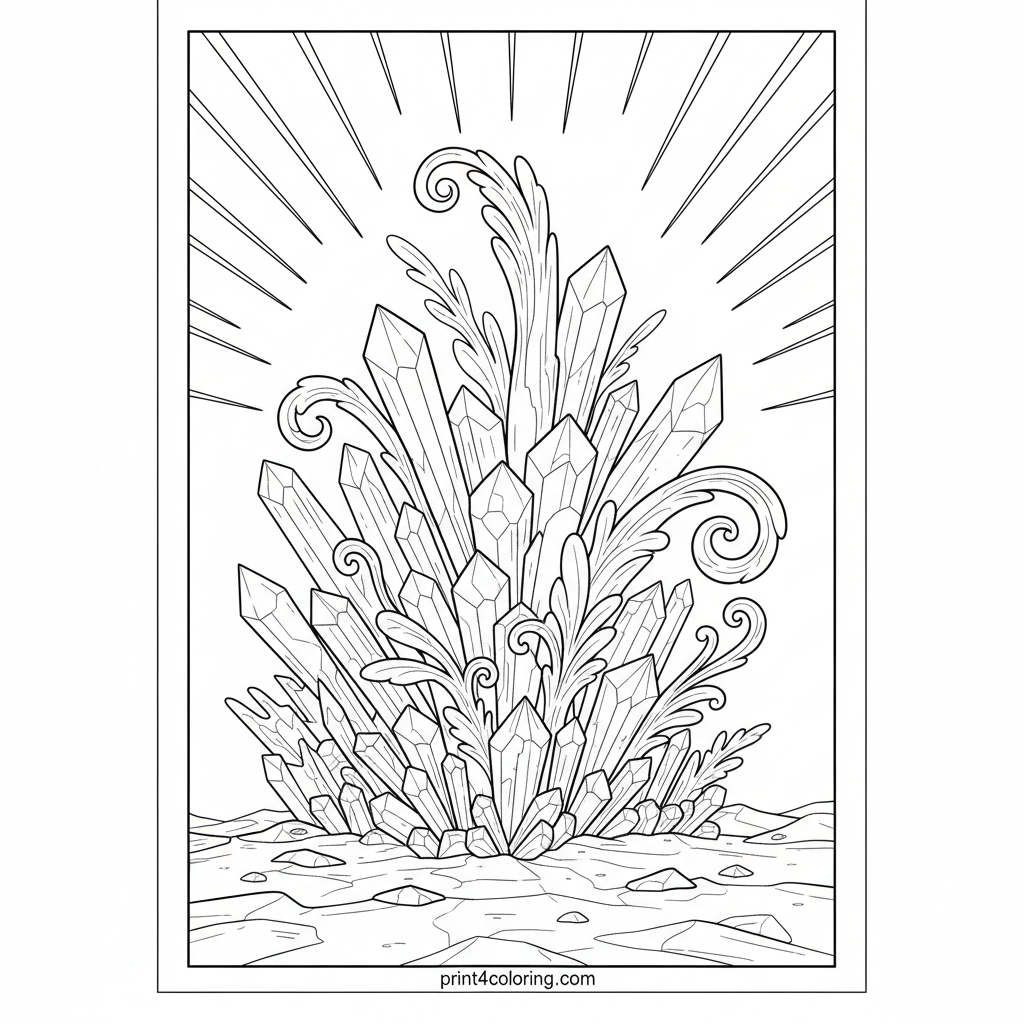 Triton's Frozen Flora: Crystalline Ice Garden Coloring Page