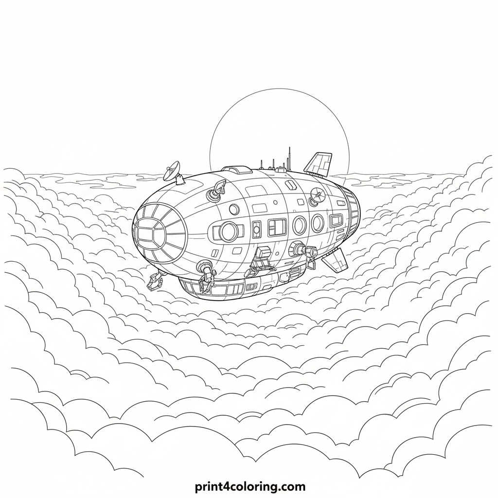 Embark on an incredible journey aboard a futuristic airship, bravely exploring the thick, swirling cloud layers of distant Venus! Use your colors to bring this scientific adventure to life, imagining the mysteries hidden within the planet's hazy atmosphere. A truly out-of-this-world coloring challenge!