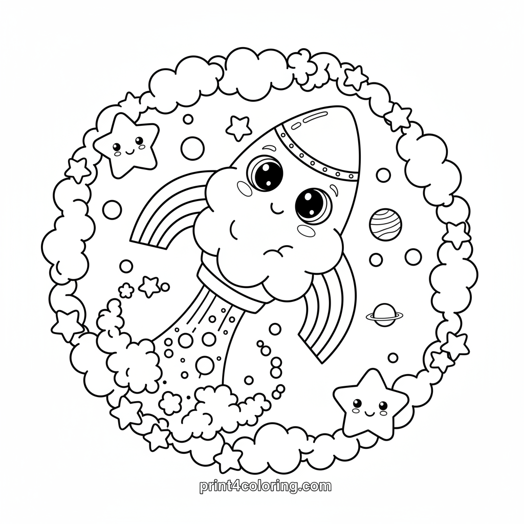 #rainbow#rocket#space#clouds#stardust#whimsical#coloring-page#printable