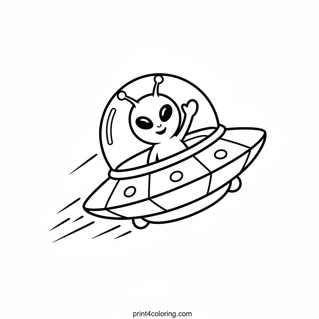 #alien#space#friendly#cute#spaceship#waving#coloring-page#printable