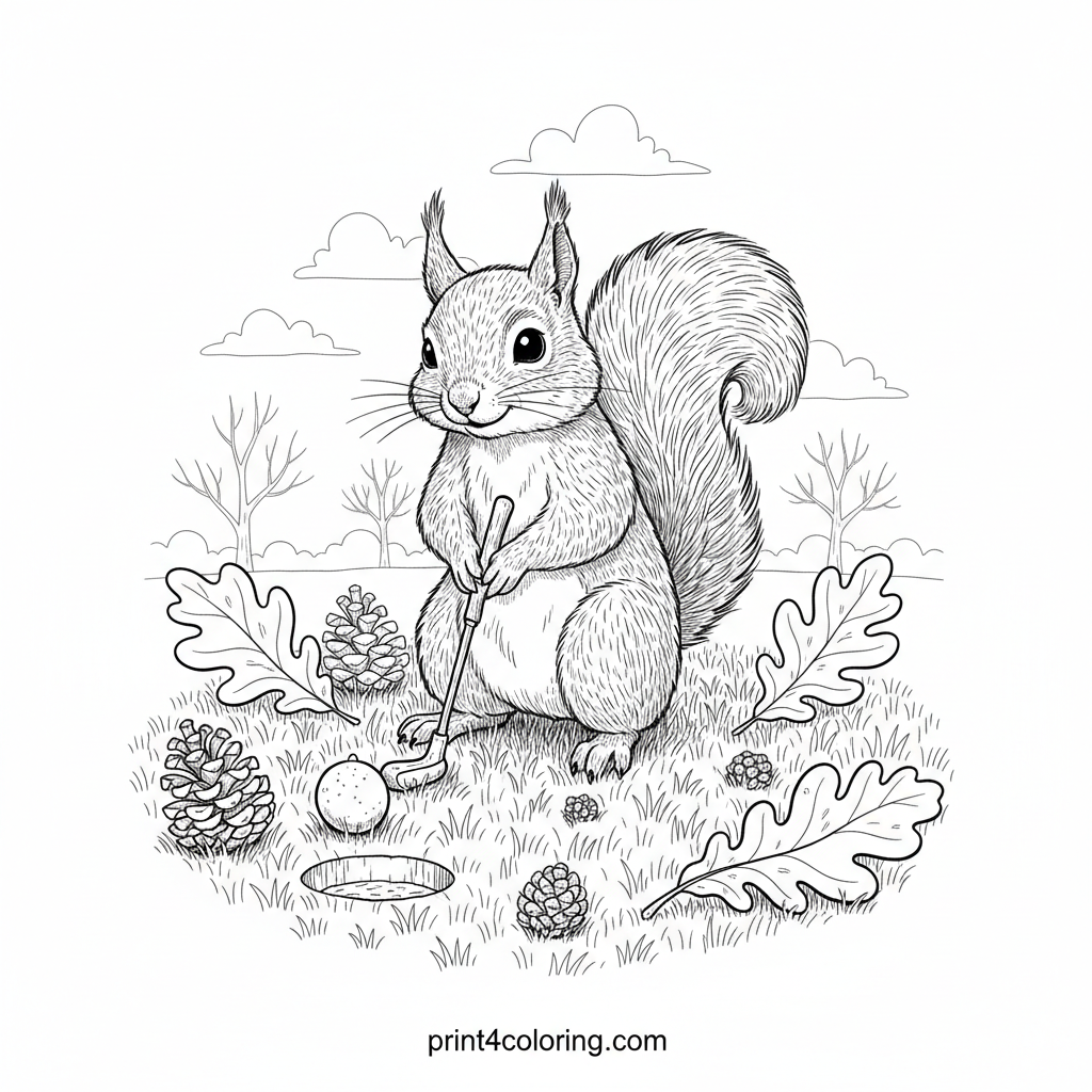 #squirrel#golf#acorn#nature#forest#animal-sports#detailed#expert#coloring-page#printable