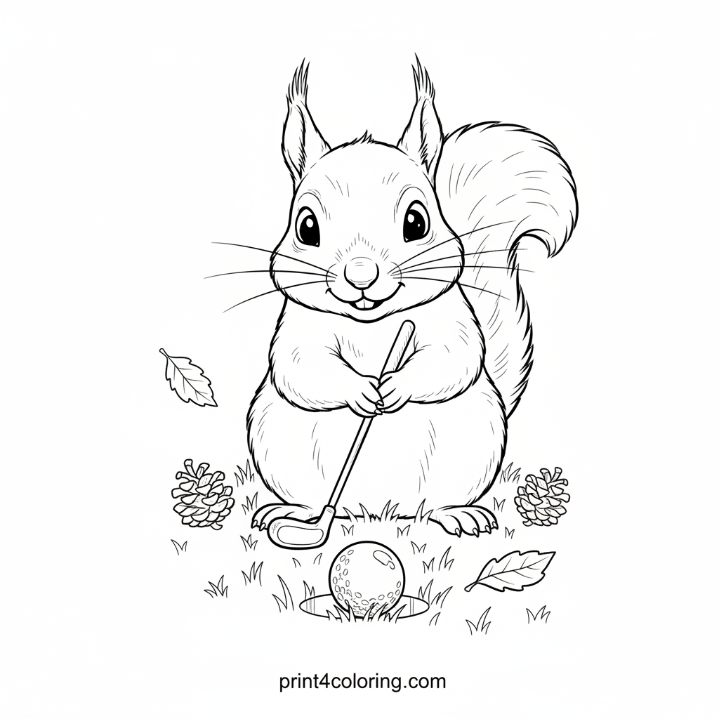 Acrobatic Acorn Golf: Squirrel's Championship Putt Coloring Page