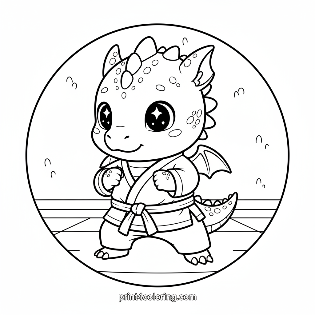 Baby Dragon's Cozy Karate Guard Coloring Page