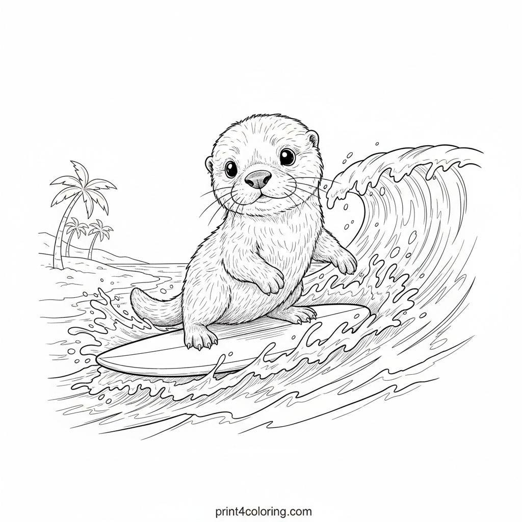 Baby Otter's First Surf Adventure Coloring Page