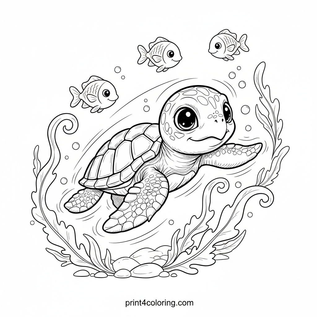 Dive into an enchanting underwater world with our baby sea turtle! Watch as this tiny explorer paddles its flippers for the very first time in sparkling clear water. Delicate seaweed sways gently, and curious little fish gather around to welcome their new friend. A heartwarming scene full of wonder and discovery.