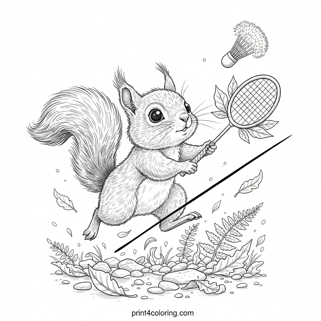 #baby-squirrel#forest#badminton#cute-animal#nature#woodland-creatures#coloring-page#printable